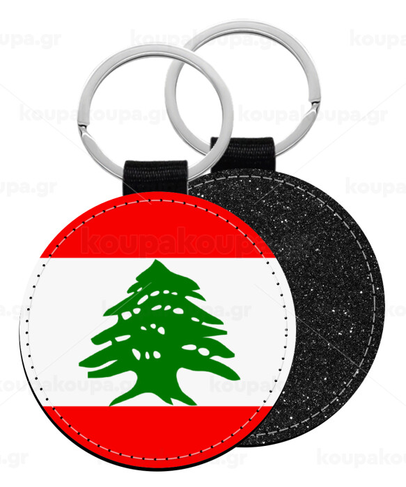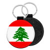 Lebanon flag, Μπρελόκ Δερματίνη, στρογγυλό ΜΑΥΡΟ (5cm)
