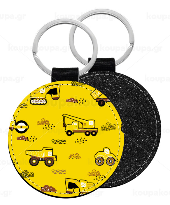 Car construction, Μπρελόκ Δερματίνη, στρογγυλό ΜΑΥΡΟ (5cm)