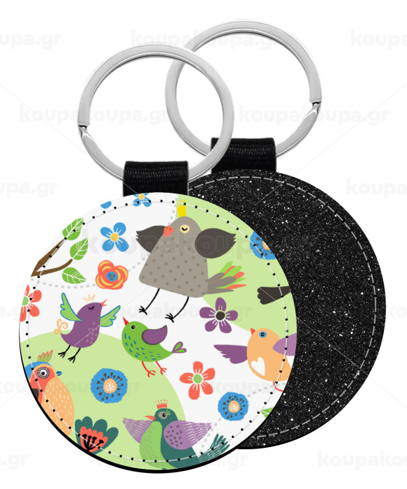 τα πουλάκια, Μπρελόκ Δερματίνη, στρογγυλό ΜΑΥΡΟ (5cm)