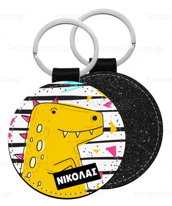 t-rex , Μπρελόκ Δερματίνη, στρογγυλό ΜΑΥΡΟ (5cm)