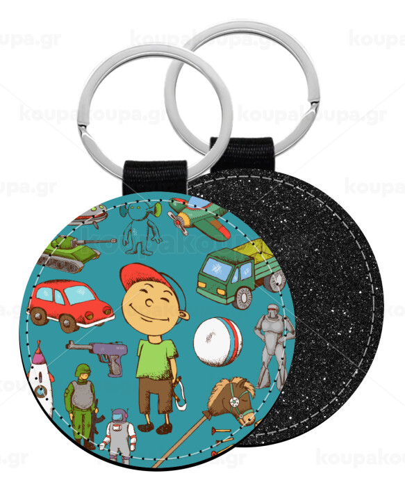 Toys Boy, Μπρελόκ Δερματίνη, στρογγυλό ΜΑΥΡΟ (5cm)