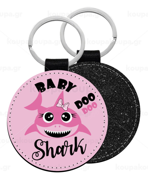Baby Shark (girl), Μπρελόκ Δερματίνη, στρογγυλό ΜΑΥΡΟ (5cm)