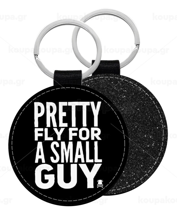 Pretty fly for a small guy, Μπρελόκ Δερματίνη, στρογγυλό ΜΑΥΡΟ (5cm)