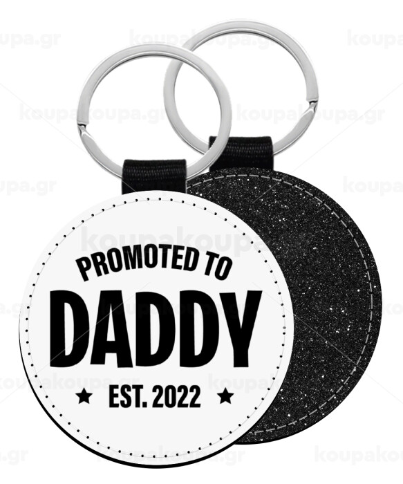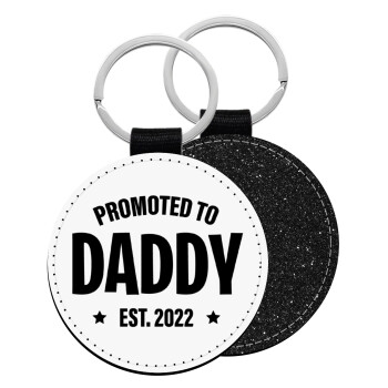 Promoted to Daddy, Μπρελόκ Δερματίνη, στρογγυλό ΜΑΥΡΟ (5cm)