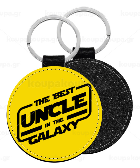 The Best UNCLE in the Galaxy, Μπρελόκ Δερματίνη, στρογγυλό ΜΑΥΡΟ (5cm)