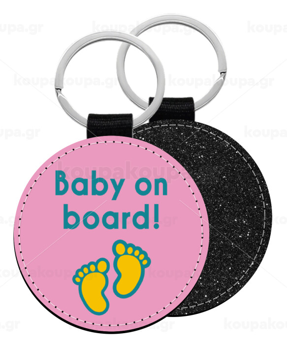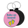 Baby on Board πατουσα Κορίτσι, Μπρελόκ Δερματίνη, στρογγυλό ΜΑΥΡΟ (5cm)