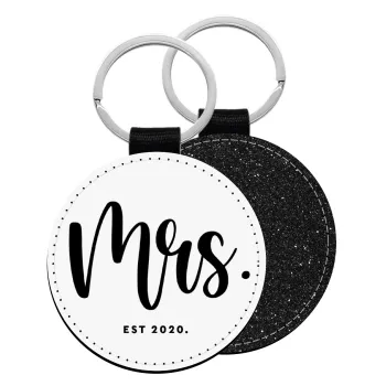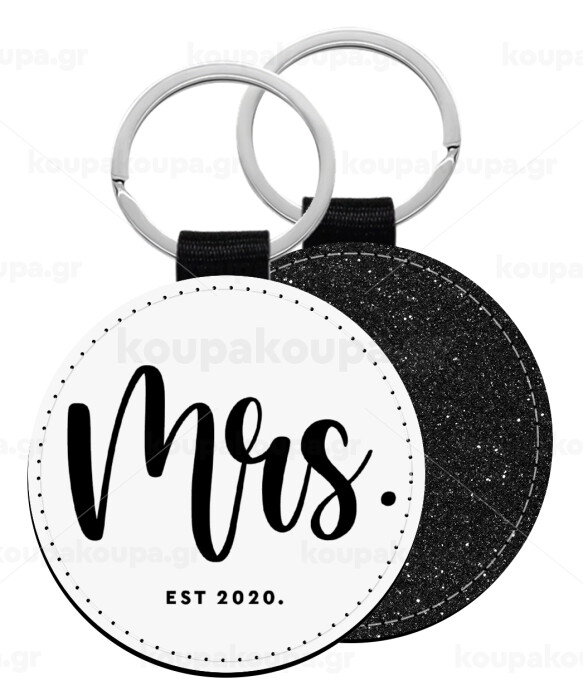 Mr & Mrs (Mrs), Μπρελόκ Δερματίνη, στρογγυλό ΜΑΥΡΟ (5cm)