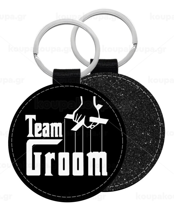 Team Groom, Μπρελόκ Δερματίνη, στρογγυλό ΜΑΥΡΟ (5cm)