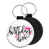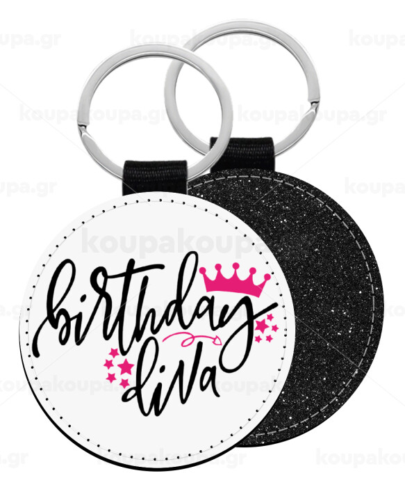 Birthday Diva queen, Μπρελόκ Δερματίνη, στρογγυλό ΜΑΥΡΟ (5cm)