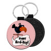 Happy Bird Day, Μπρελόκ Δερματίνη, στρογγυλό ΜΑΥΡΟ (5cm)