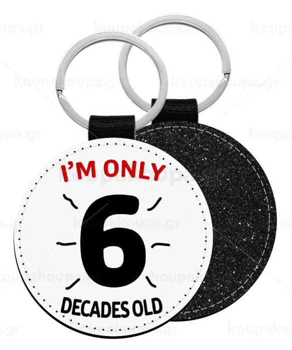 I'm only NUMBER decades OLD, Μπρελόκ Δερματίνη, στρογγυλό ΜΑΥΡΟ (5cm)