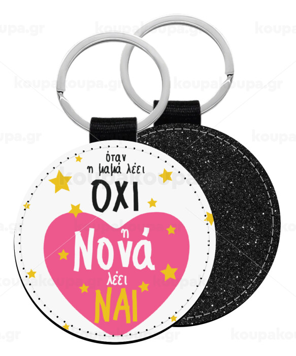 Η νονά λέει ναι!!!, Μπρελόκ Δερματίνη, στρογγυλό ΜΑΥΡΟ (5cm)