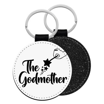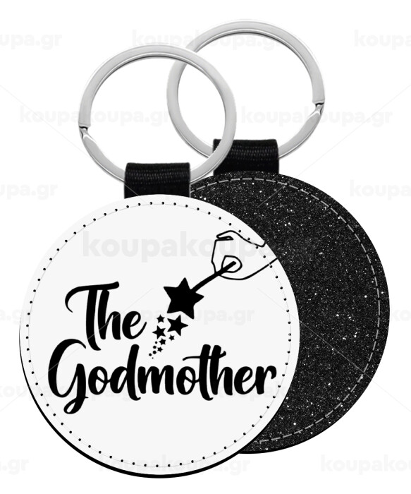 Fairy God Mother, Μπρελόκ Δερματίνη, στρογγυλό ΜΑΥΡΟ (5cm)