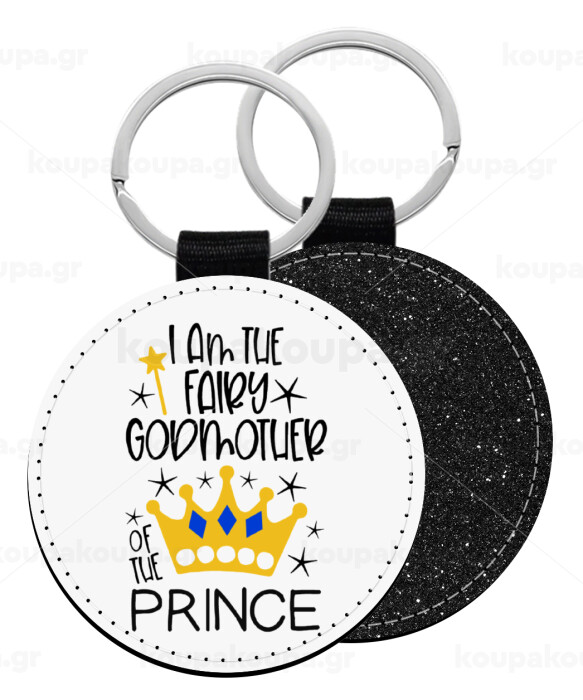 I am the fairy Godmother of the Prince, Μπρελόκ Δερματίνη, στρογγυλό ΜΑΥΡΟ (5cm)