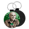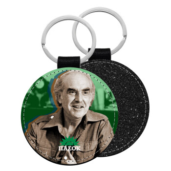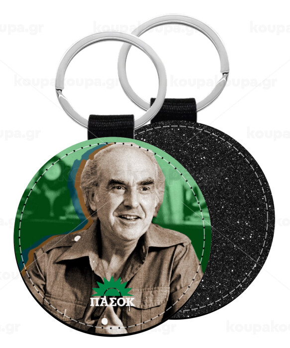 ΠΑΣΟΚ Ανδρέας Παπανδρέου, Μπρελόκ Δερματίνη, στρογγυλό ΜΑΥΡΟ (5cm)