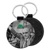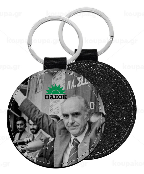 ΠΑΣΟΚ Ανδρέας, Μπρελόκ Δερματίνη, στρογγυλό ΜΑΥΡΟ (5cm)