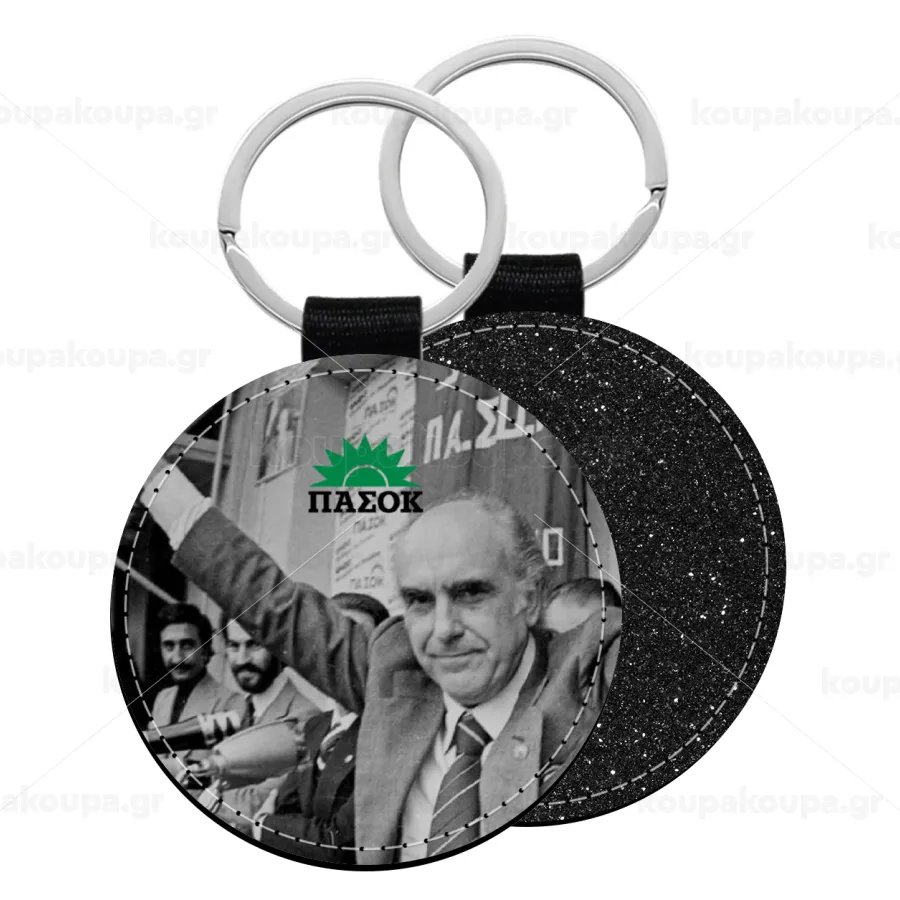 ΠΑΣΟΚ Ανδρέας, Μπρελόκ Δερματίνη, στρογγυλό ΜΑΥΡΟ (5cm)