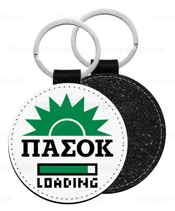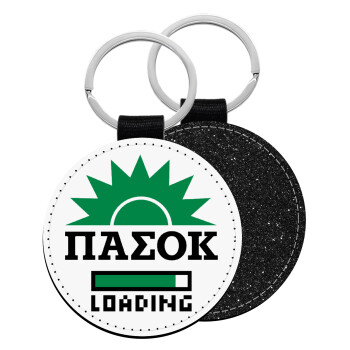 PASOK Loading, Μπρελόκ Δερματίνη, στρογγυλό ΜΑΥΡΟ (5cm)