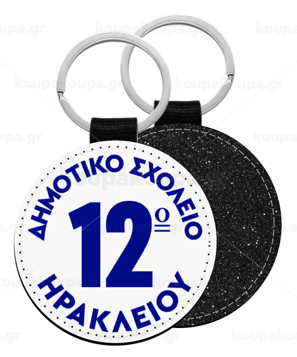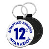 Έμβλημα Σχολικό λευκή, Μπρελόκ Δερματίνη, στρογγυλό ΜΑΥΡΟ (5cm)