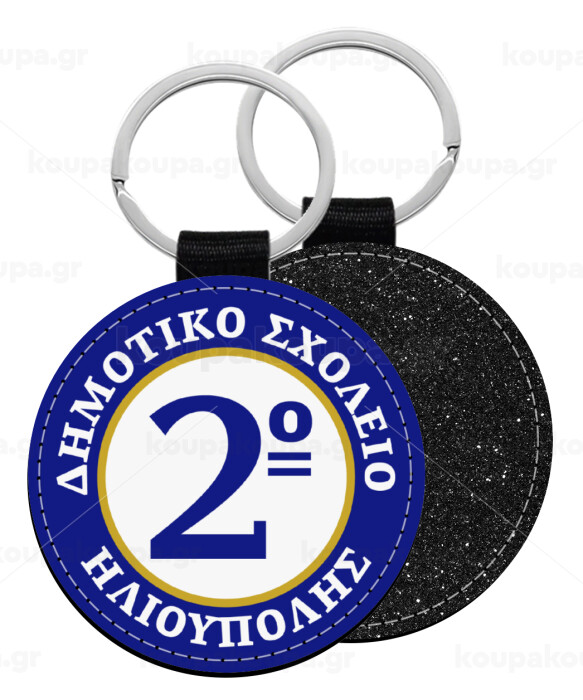Έμβλημα Σχολικό μπλε/χρυσό, Μπρελόκ Δερματίνη, στρογγυλό ΜΑΥΡΟ (5cm)