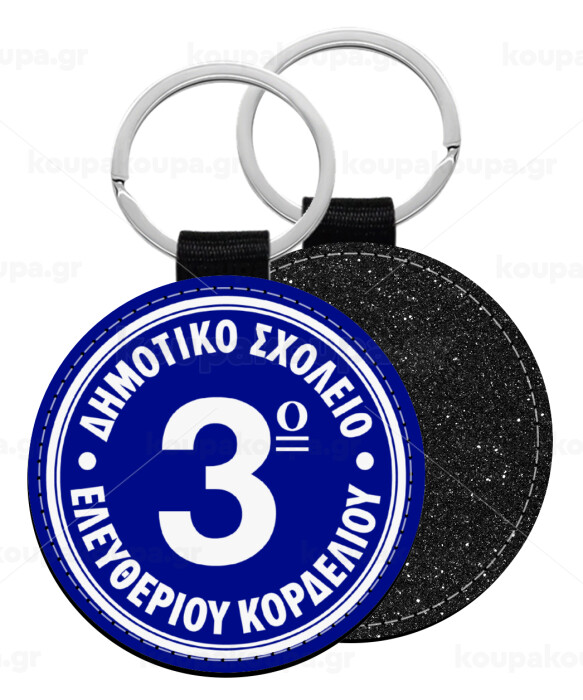 Έμβλημα Σχολικό μπλε, Μπρελόκ Δερματίνη, στρογγυλό ΜΑΥΡΟ (5cm)