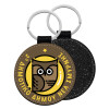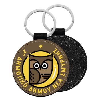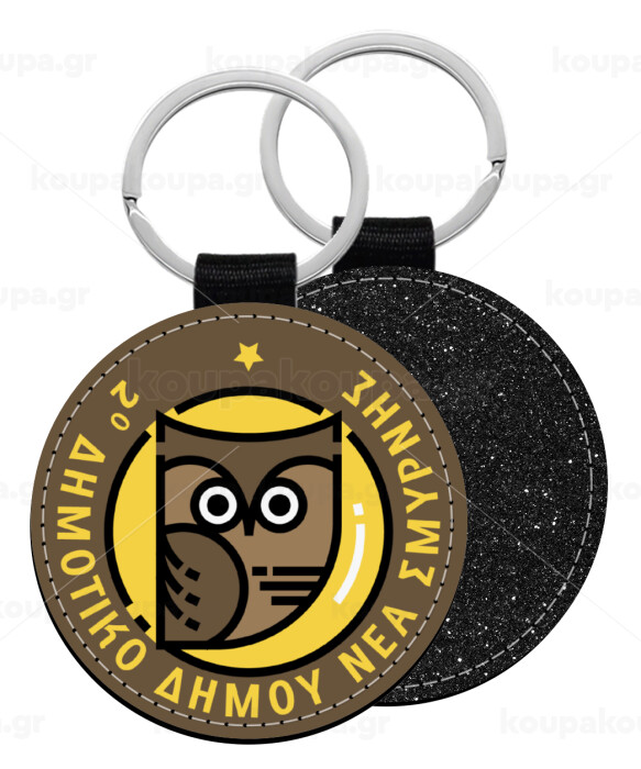 Έμβλημα Σχολικό brown, Μπρελόκ Δερματίνη, στρογγυλό ΜΑΥΡΟ (5cm)