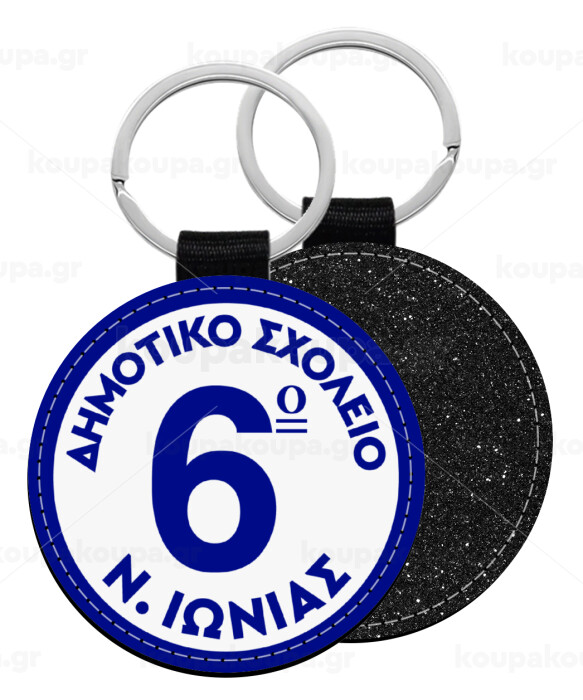 Σχολικό σήμα κλασικό μπλε, Μπρελόκ Δερματίνη, στρογγυλό ΜΑΥΡΟ (5cm)