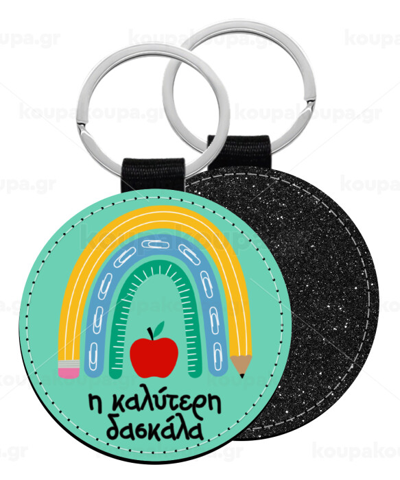 Η καλύτερη δασκάλα, Μπρελόκ Δερματίνη, στρογγυλό ΜΑΥΡΟ (5cm)