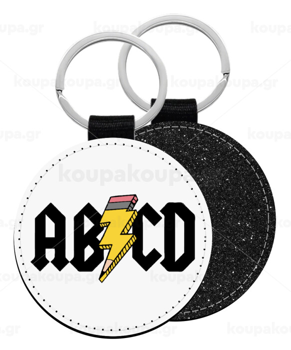 ABCD, Μπρελόκ Δερματίνη, στρογγυλό ΜΑΥΡΟ (5cm)