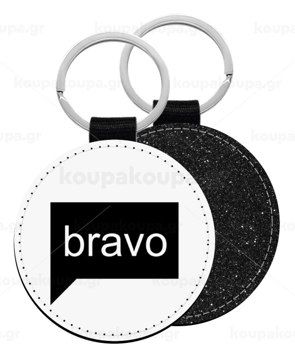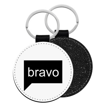 Bravo, Μπρελόκ Δερματίνη, στρογγυλό ΜΑΥΡΟ (5cm)
