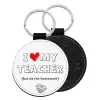 i love my teacher but no the homework outline, Μπρελόκ Δερματίνη, στρογγυλό ΜΑΥΡΟ (5cm)