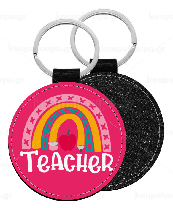 Rainbow teacher, Μπρελόκ Δερματίνη, στρογγυλό ΜΑΥΡΟ (5cm)