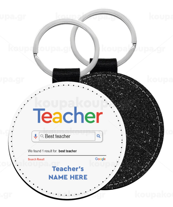 Searching for Best Teacher..., Μπρελόκ Δερματίνη, στρογγυλό ΜΑΥΡΟ (5cm)