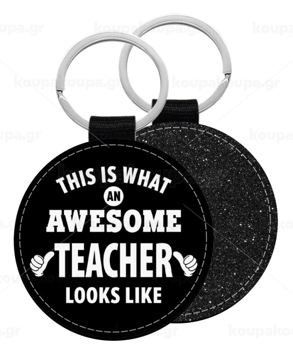 This is what an awesome teacher looks like hands!!! , Μπρελόκ Δερματίνη, στρογγυλό ΜΑΥΡΟ (5cm)
