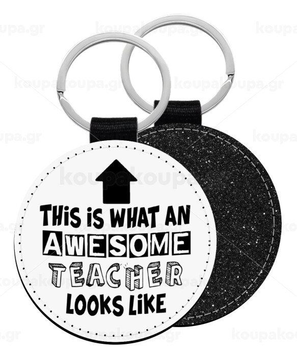 This is what an awesome teacher looks like!!! , Μπρελόκ Δερματίνη, στρογγυλό ΜΑΥΡΟ (5cm)