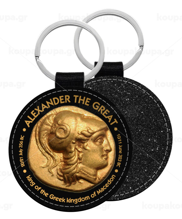 Alexander the Great, Μπρελόκ Δερματίνη, στρογγυλό ΜΑΥΡΟ (5cm)