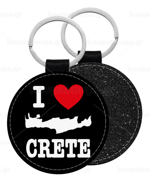 I Love Crete, Μπρελόκ Δερματίνη, στρογγυλό ΜΑΥΡΟ (5cm)