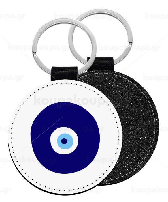 Χάντρα γαλαζιά, Μπρελόκ Δερματίνη, στρογγυλό ΜΑΥΡΟ (5cm)