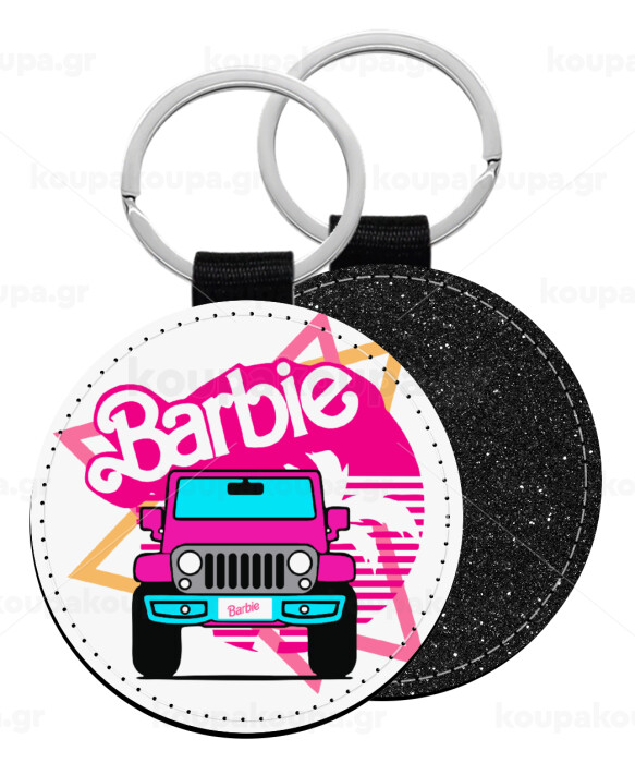 Barbie car, Μπρελόκ Δερματίνη, στρογγυλό ΜΑΥΡΟ (5cm)