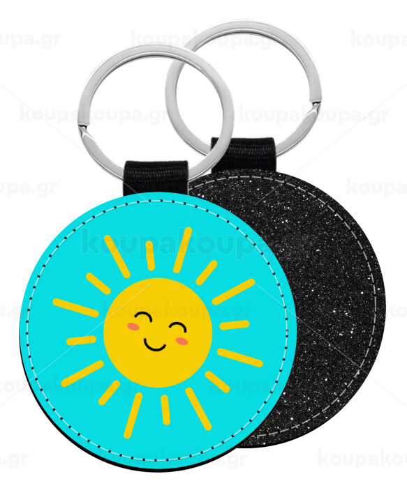 Happy sun, Μπρελόκ Δερματίνη, στρογγυλό ΜΑΥΡΟ (5cm)