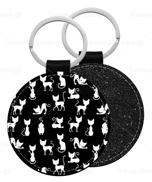 Γατούλες κυρίες, Μπρελόκ Δερματίνη, στρογγυλό ΜΑΥΡΟ (5cm)