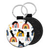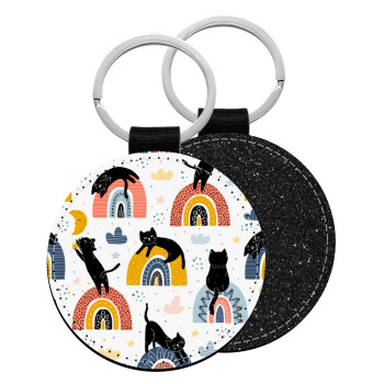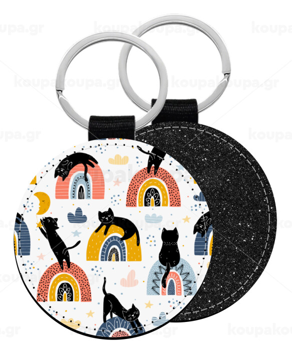 Γατούλες, Μπρελόκ Δερματίνη, στρογγυλό ΜΑΥΡΟ (5cm)