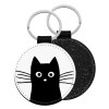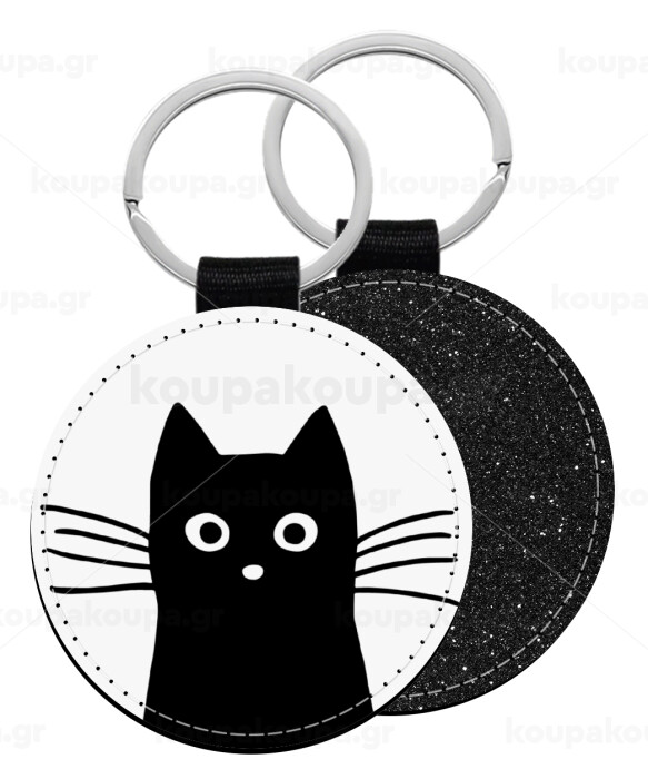 Black Cat, Μπρελόκ Δερματίνη, στρογγυλό ΜΑΥΡΟ (5cm)