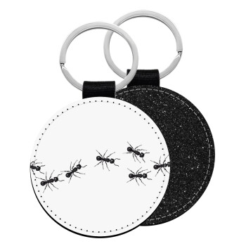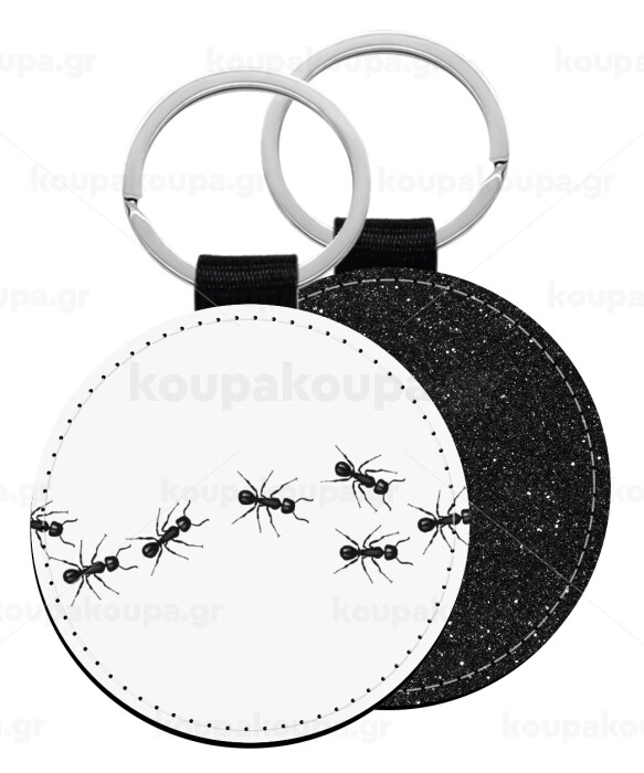 Ants, Μπρελόκ Δερματίνη, στρογγυλό ΜΑΥΡΟ (5cm)