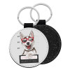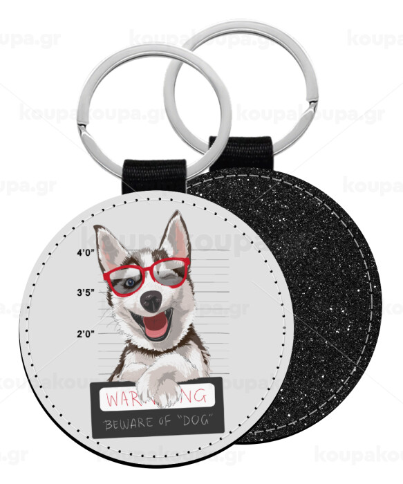 Warning, beware of Dog, Μπρελόκ Δερματίνη, στρογγυλό ΜΑΥΡΟ (5cm)