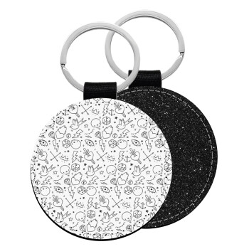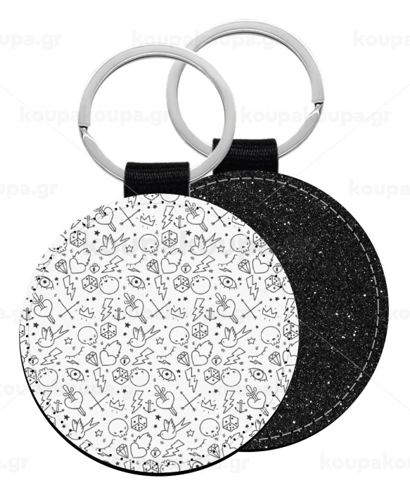 Σκελετοί lines, Μπρελόκ Δερματίνη, στρογγυλό ΜΑΥΡΟ (5cm)