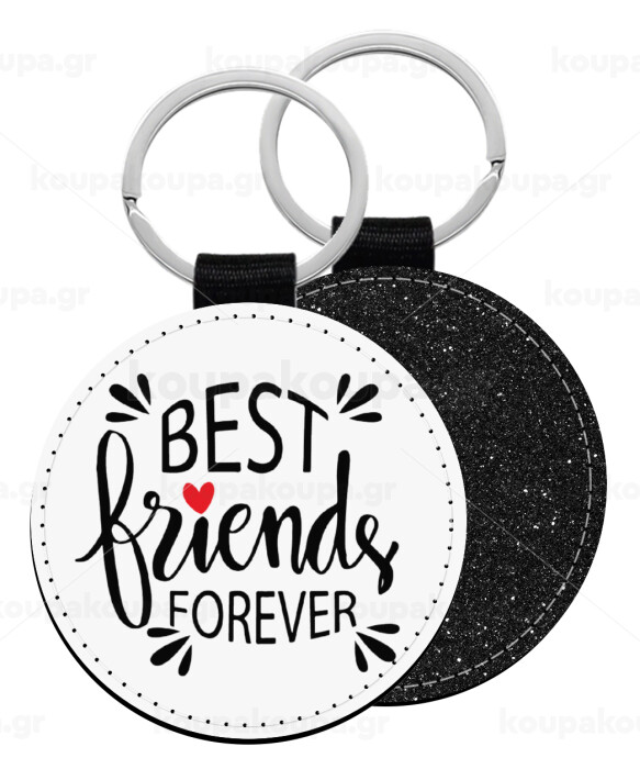 Best Friends forever, Μπρελόκ Δερματίνη, στρογγυλό ΜΑΥΡΟ (5cm)