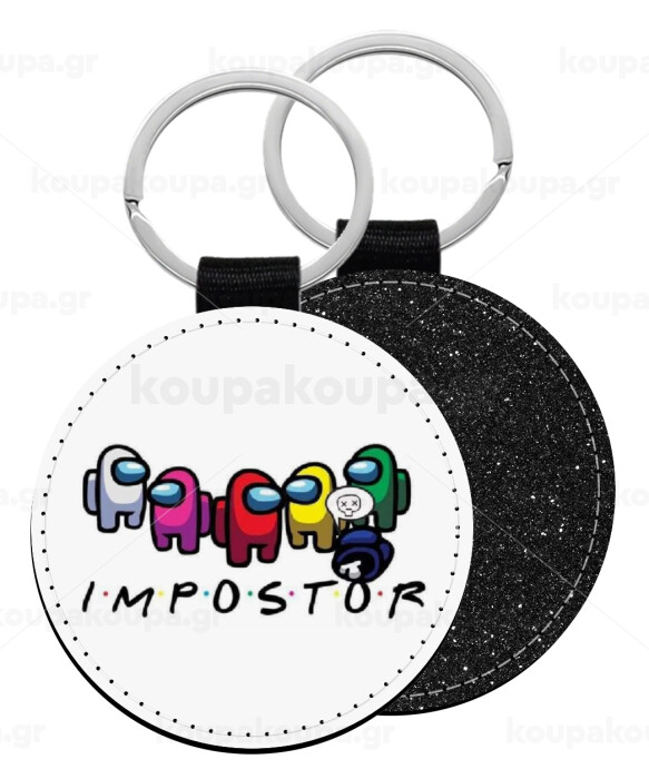 Among US impostor, Μπρελόκ Δερματίνη, στρογγυλό ΜΑΥΡΟ (5cm)
