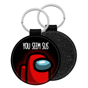 Among US, you seem sus, Μπρελόκ Δερματίνη, στρογγυλό ΜΑΥΡΟ (5cm)