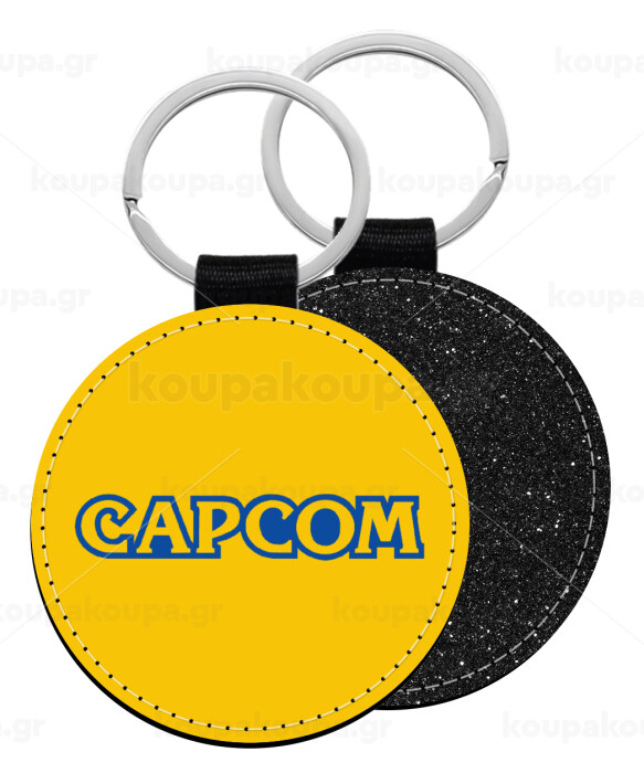 Capcom, Μπρελόκ Δερματίνη, στρογγυλό ΜΑΥΡΟ (5cm)